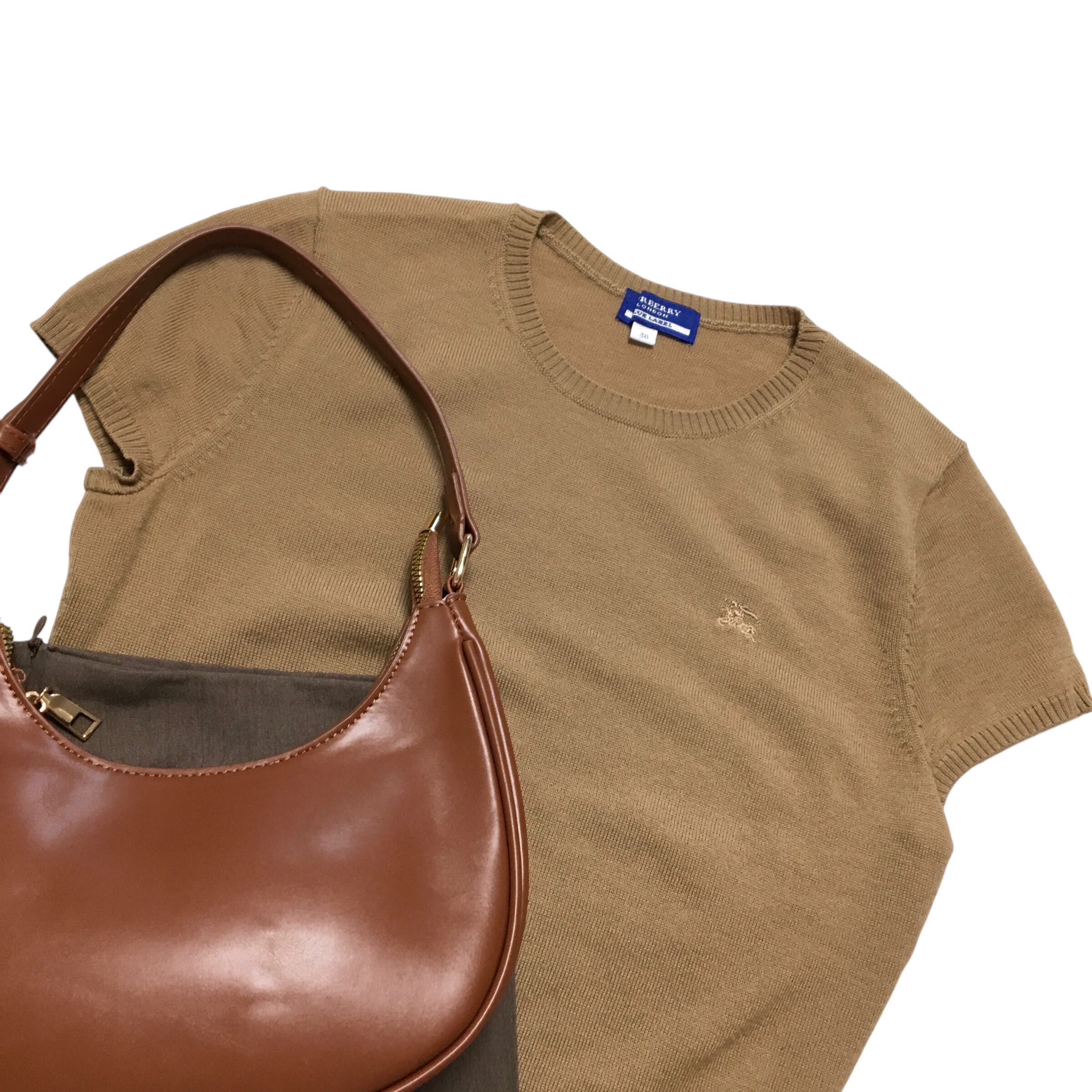 ●10127 burberry knit tops バーバリー ニット 半袖 トップス 半袖ニット ブラウン 春服 夏服 レディース ウィメン ヴィンテージ ユーズド 古着 ブランド服 かわいい デート デート服 カジュアル きれいめ AKUBI 通阪 | AKUBI -アクビ-