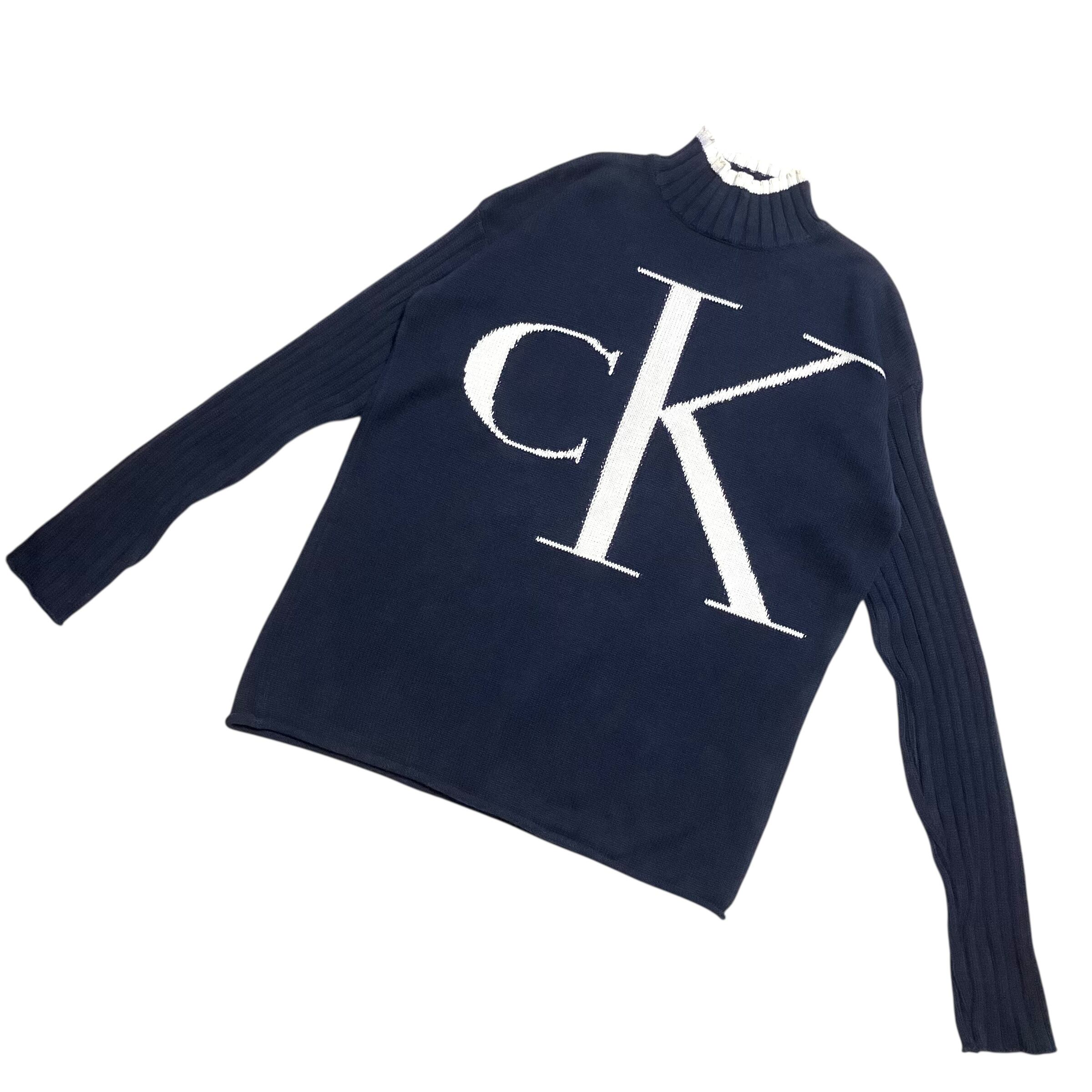 ⚫︎013101 Calvin Klein tops カルバンクライン トップス 長袖 ニット ネイビー 秋服 春服 レディース ウィメン メンズ ヴィンテージ ユーズド 古着 ブランド服 かわいい カジュアル きれいめ AKUBI 通阪