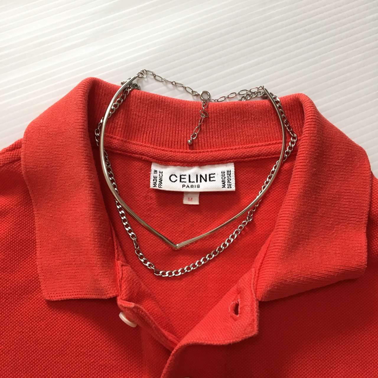 ●20004 celine tops セリーヌ トップス ポロシャツ レッド 半袖 春服 夏服 レディース ウィメン ヴィンテージ ユーズド 古着 ブランド服 かわいい デート デート服 カジュアル きれいめ AKUBI 通阪 | AKUBI -アクビ-