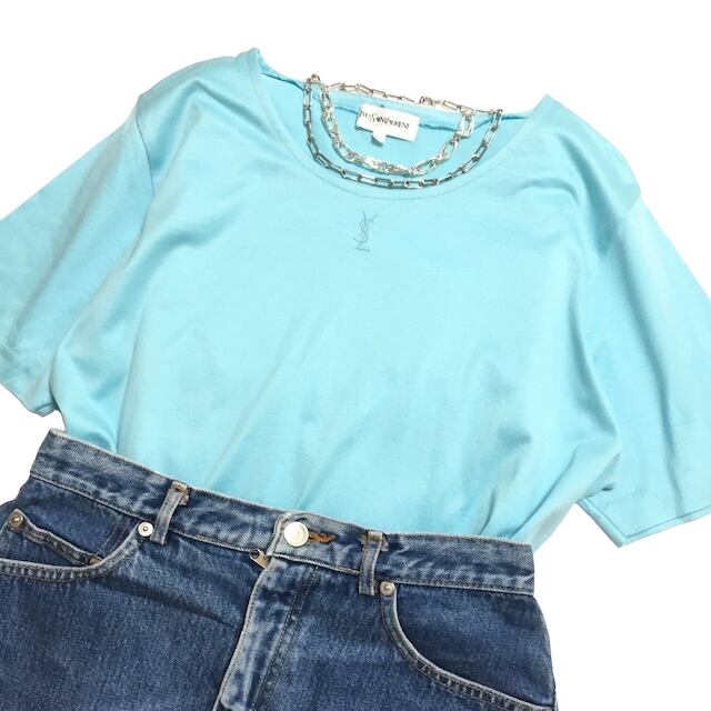 ysl tops tee イヴサンローラン トップス tシャツ アクアブルー
