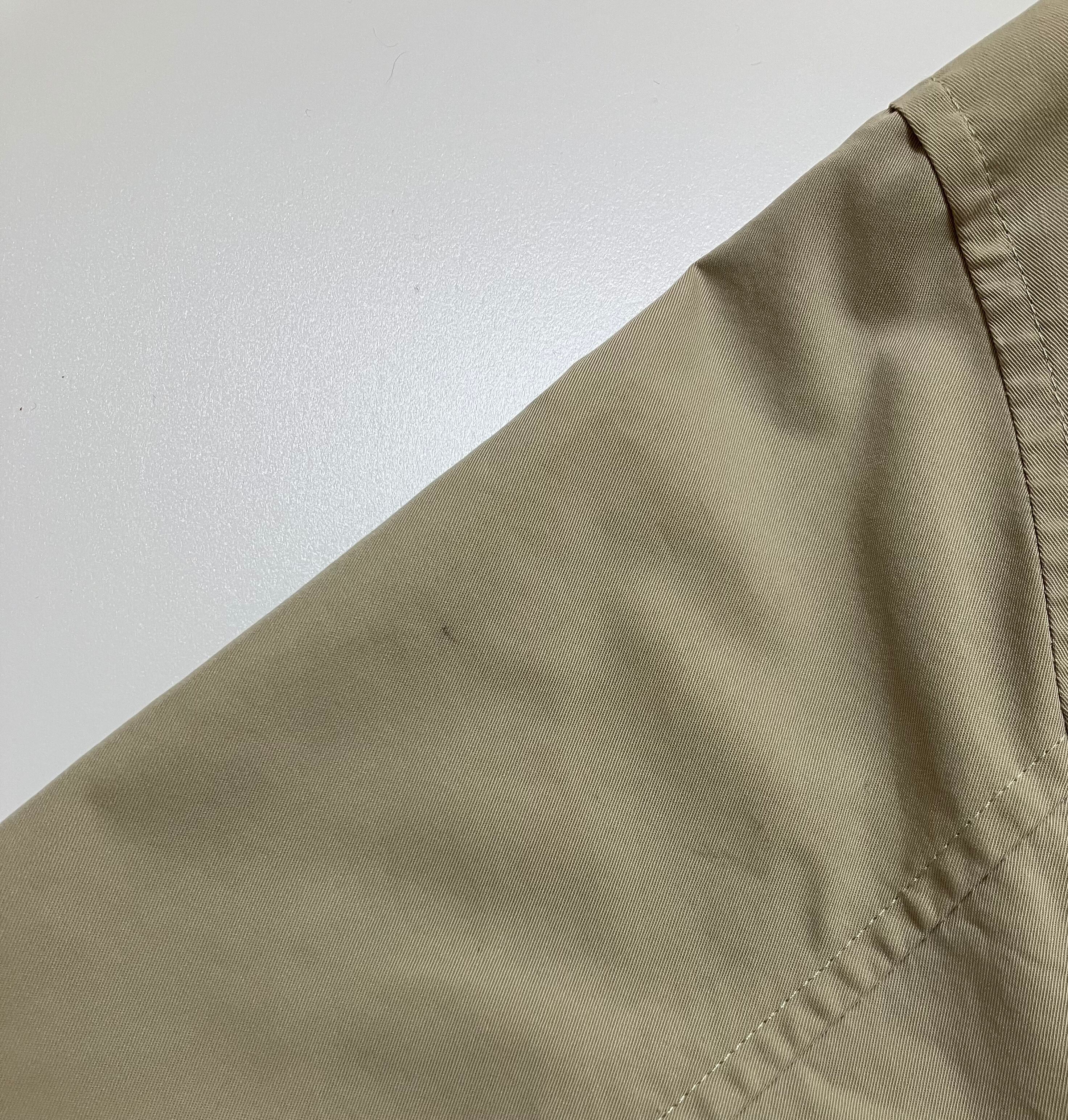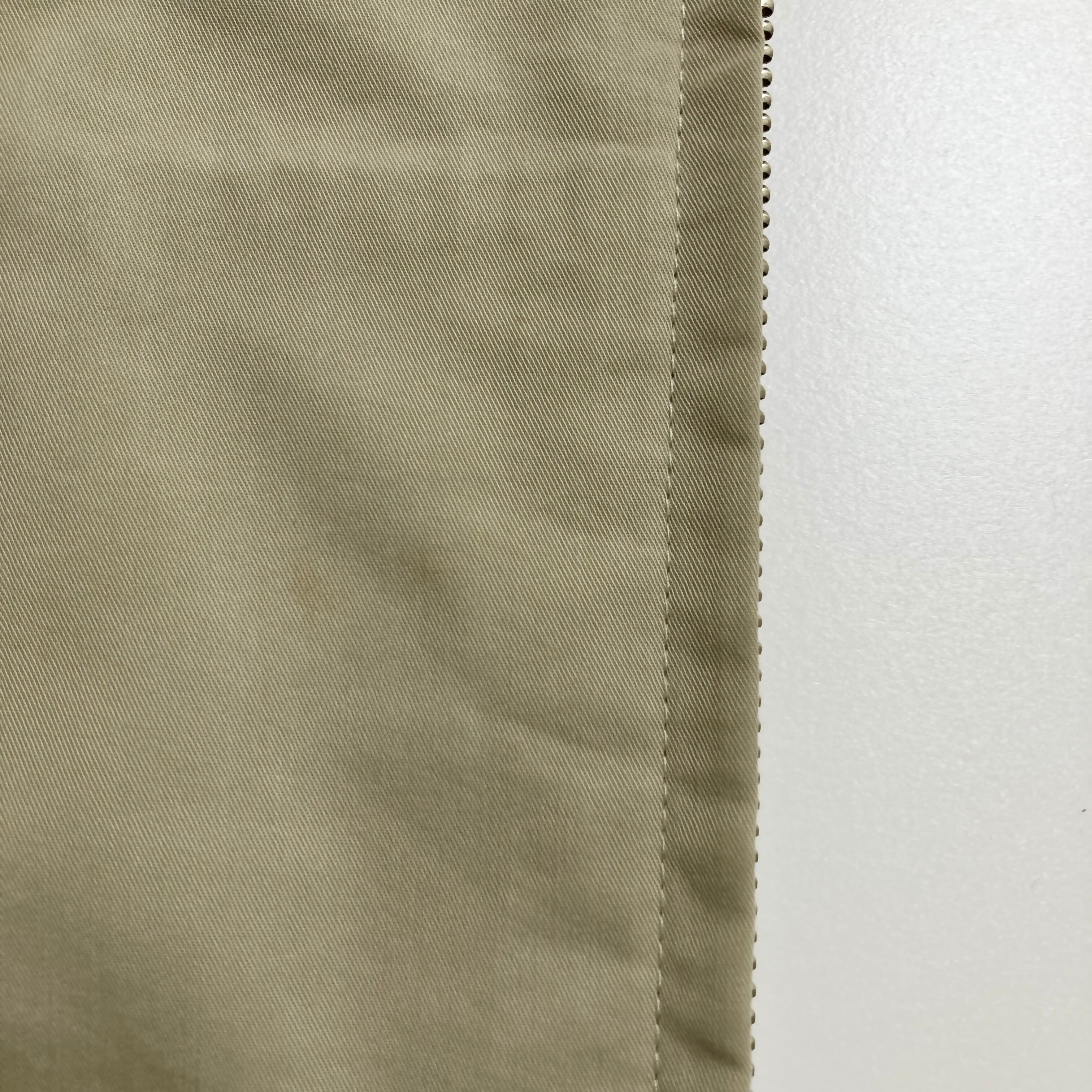 古着の為、うっすらシミ汚れが前右側中央より下ジッパー横あたり2箇所(15.16枚目)、右袖膝下あたり2箇所(17枚目)、左袖肩下と膝下あたりと袖口より上あたりに3所(18.19枚目)、背後裾下より(20枚目)にございます。コンディションを考慮しての価値としています。古着に慣れている方に大変おすすめです。