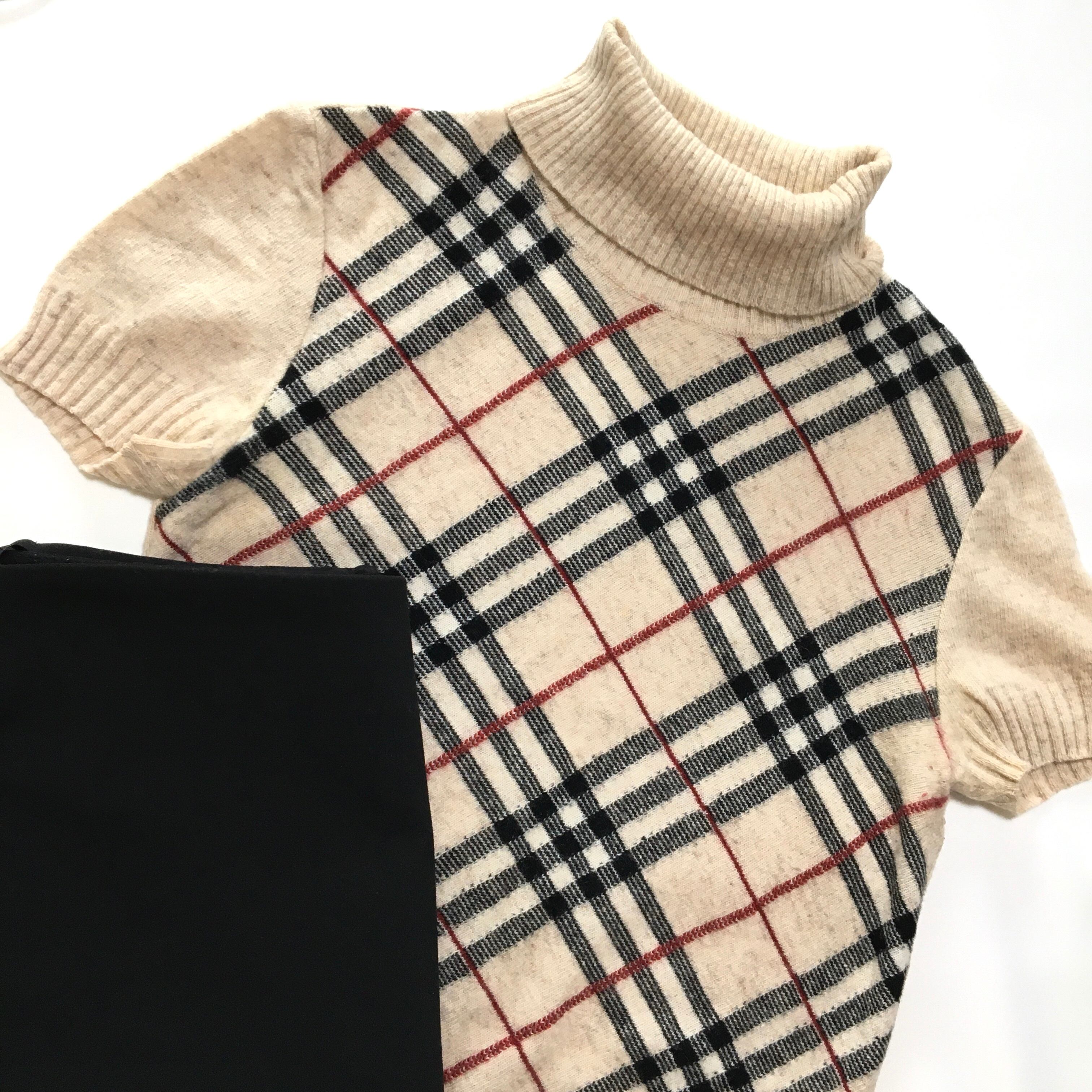 ●10133 burberry knit tops バーバリー ニット 半袖 トップス 半袖ニット タートル タートルネック モカ 春服 秋服 夏服 レディース ウィメン ヴィンテージ ユーズド 古着 ブランド服 かわいい デート デート服 カジュアル きれいめ AKUBI 通阪 | AKUBI -アクビ-