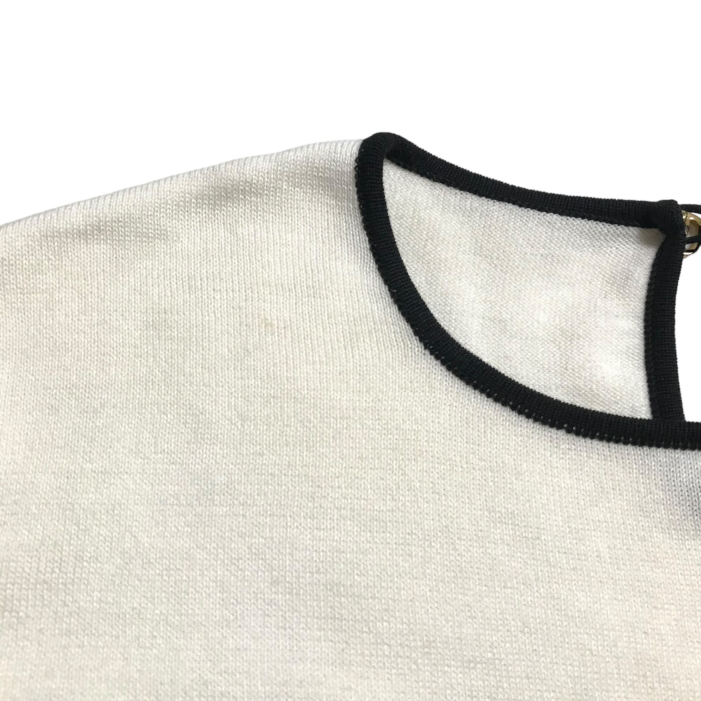 古着の為、内タグ欠品、右側首回りから3cmあたりにシミ(11枚目)と左脇に黄ばみ(12枚目)がございます。主観になりますがほぼわからないから程度かと思います。それ以外は小穴ほつれのない良いコンディションです。