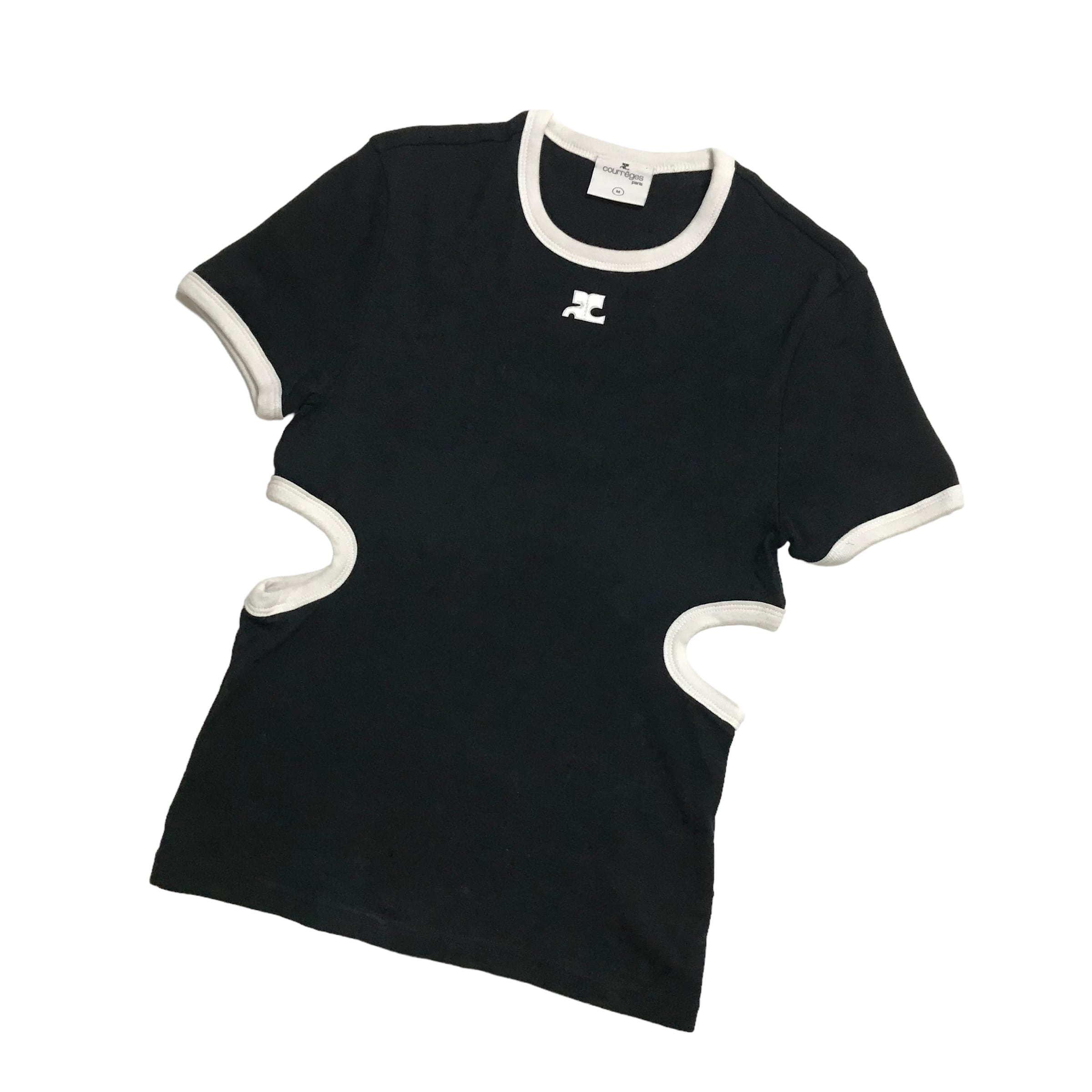 近年モデルのtops。バイカラーにウエストのカットが可愛いデザイン。胸元ロゴは少し大きめなので存在感があります。華やかに活躍してくれる一枚です。