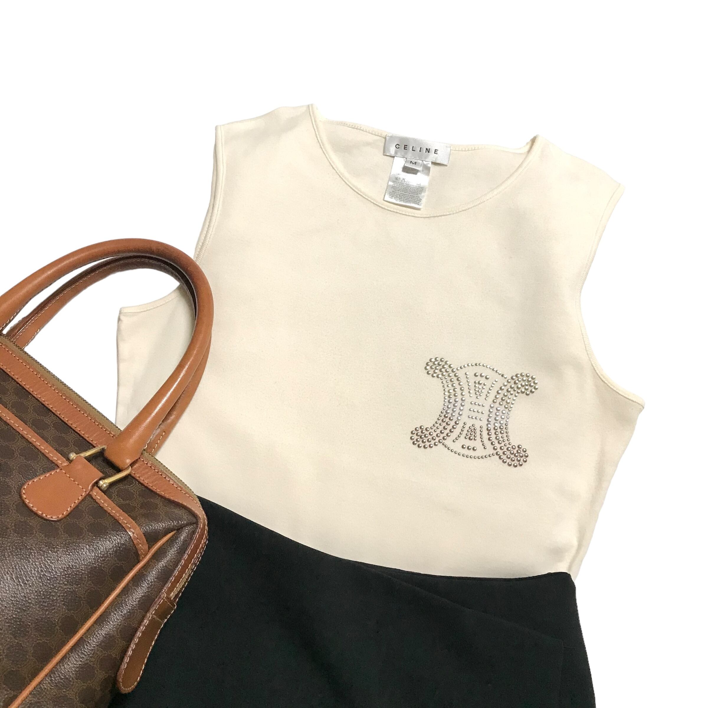 ●200019 celine tops セリーヌ トップス タンクトップ ノースリーブ アイボリー 夏服 レディース ウィメン ヴィンテージ ユーズド 古着 ブランド服 かわいい デート デート服 カジュアル きれいめ AKUBI 通販 | AKUBI -アクビ-