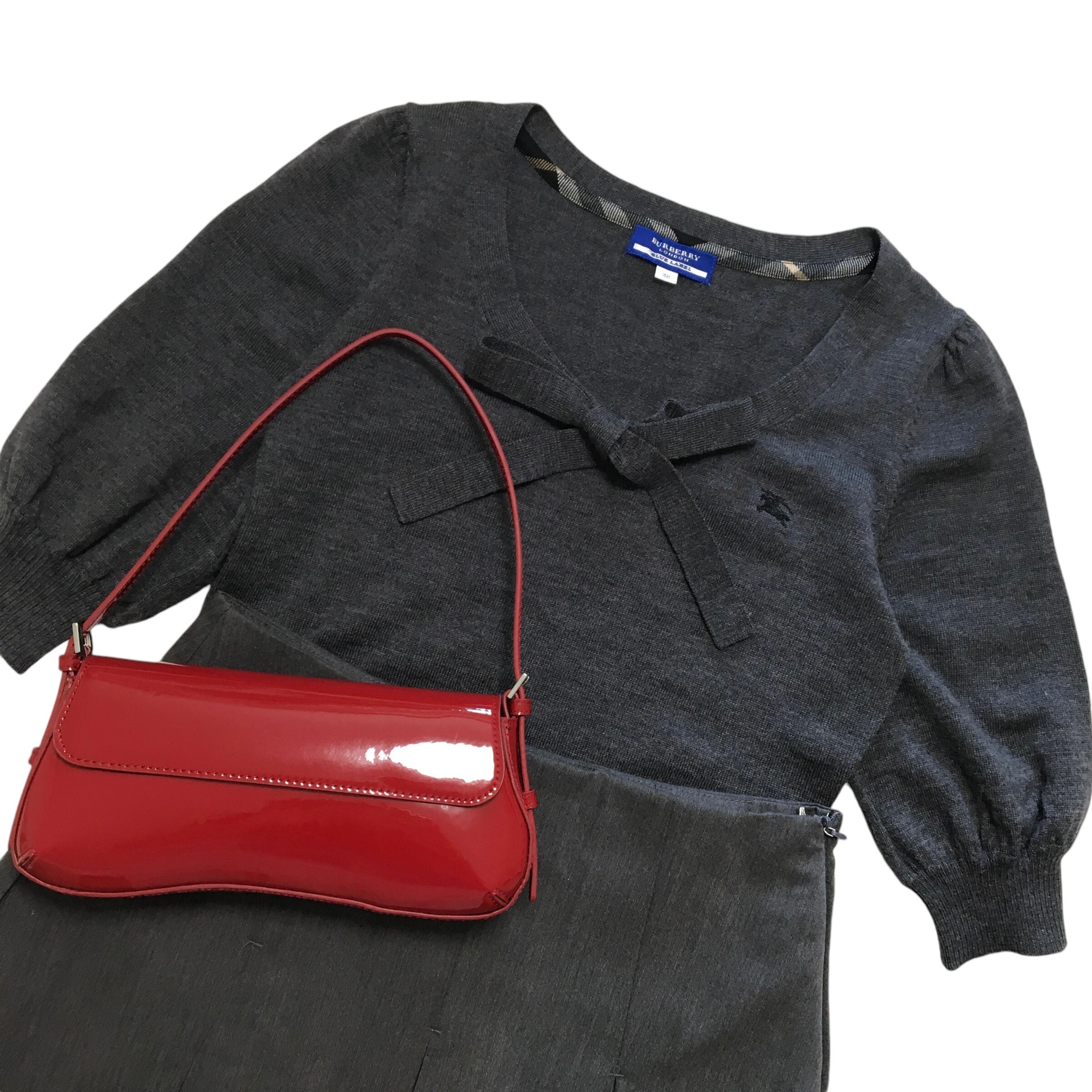 ●01039 Burberry tops バーバリー トップス 半袖 ニット リボン グレー 秋服 春服 冬服 レディース ウィメン ヴィンテージ ユーズド 古着 ブランド服 かわいい デート デート服 カジュアル きれいめ AKUBI 通阪 | AKUBI -アクビ-