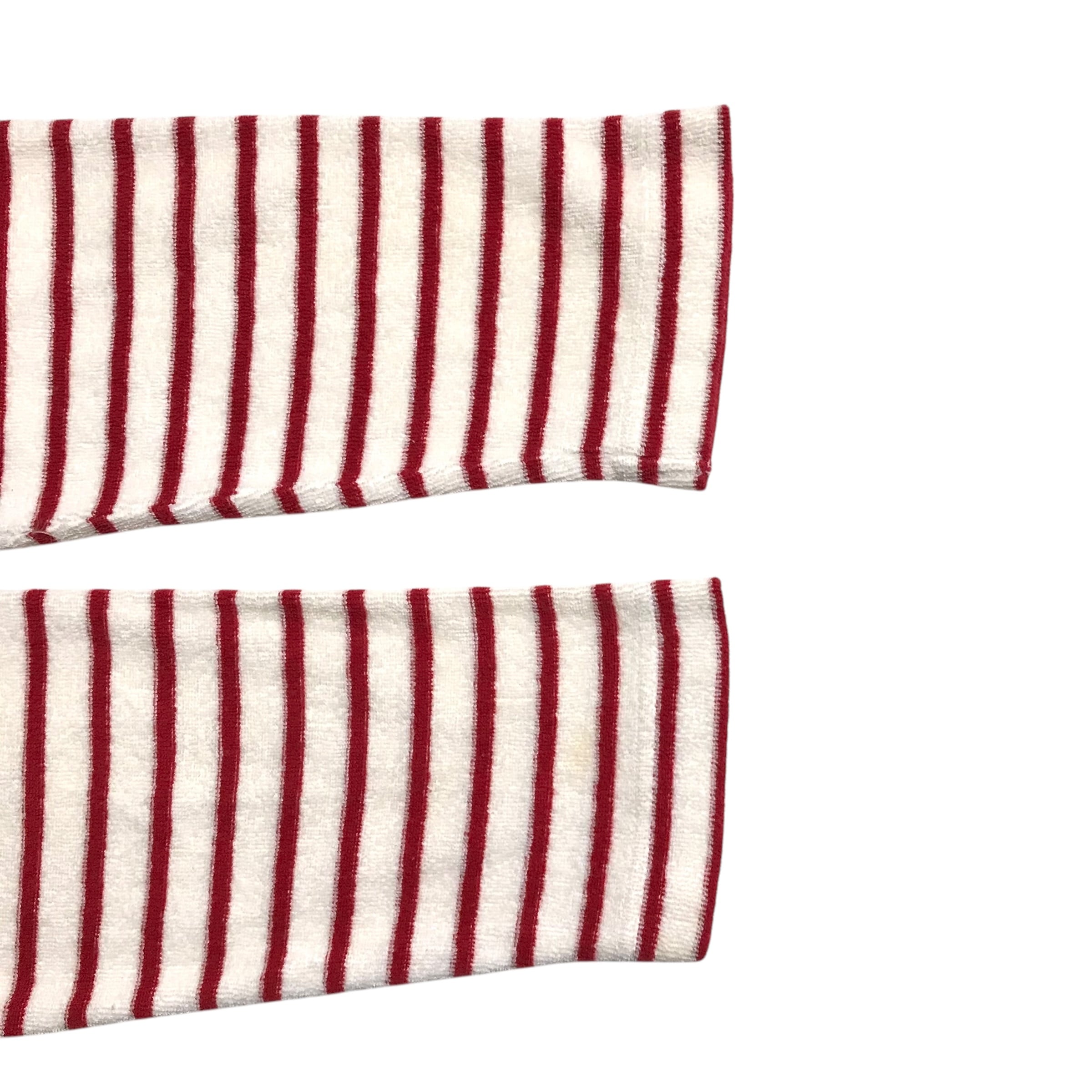 タオル生地のようなtops。胸元のロゴはワッペンです。色んなボトムスでも比較的合わせやすいので普段使いに大変活躍してくれると思います。